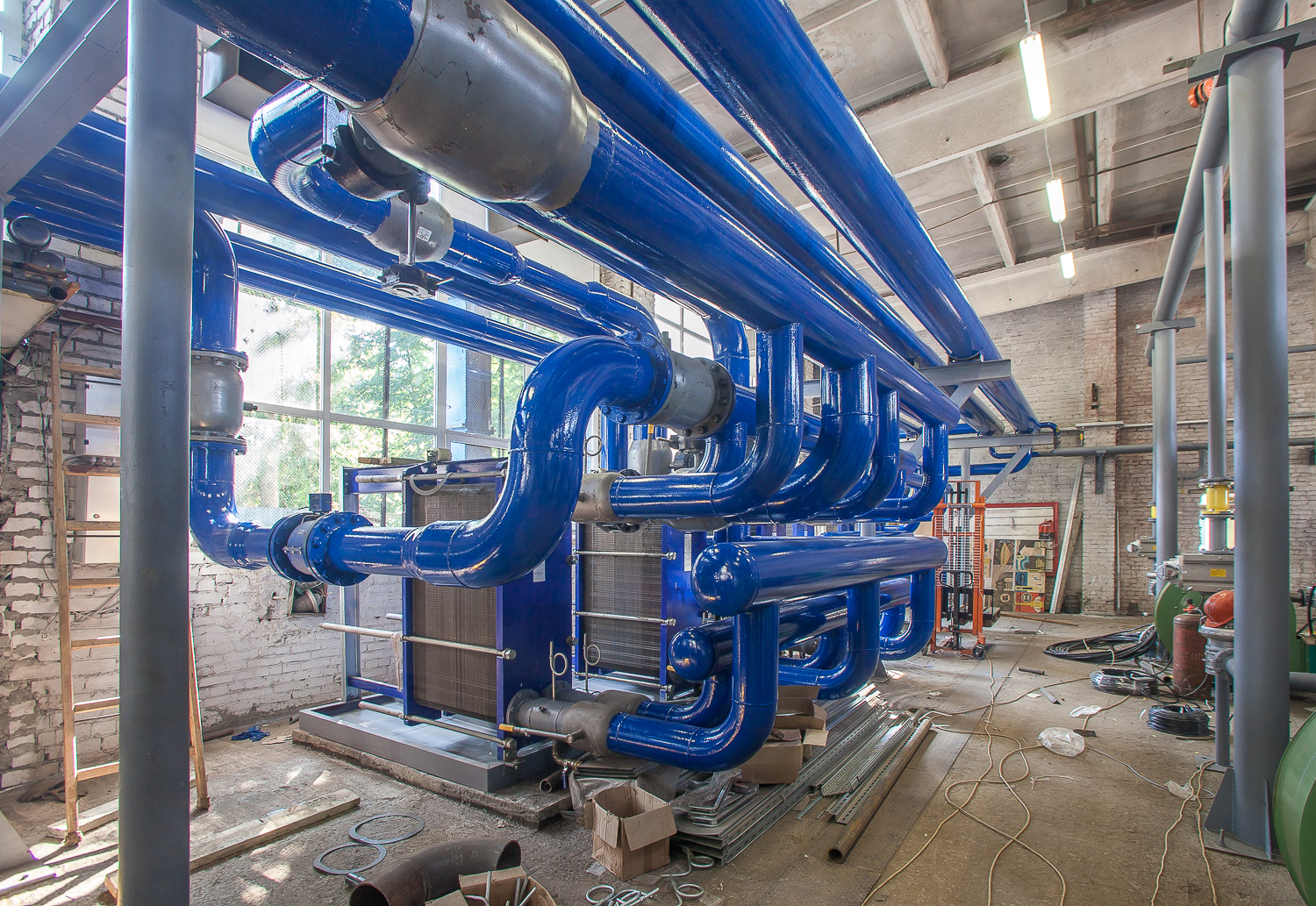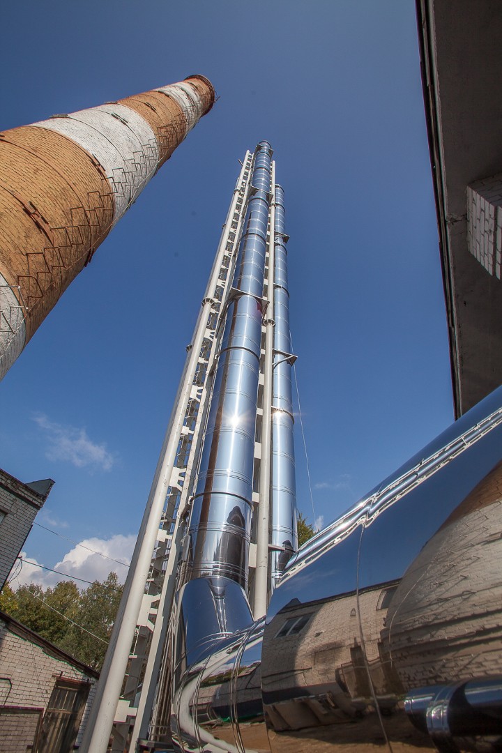 Реализация объекта шла в короткие сроки. Сотрудники нашей компании работали в две смены, семь дней в неделю. Из-за близости жилых построек, нами было применено нестандартное решение на газоходах от котлов. Были спроектированы и установлены шумоглушители Немецкого производства, что позволило снизить шумовые характеристики котельной.