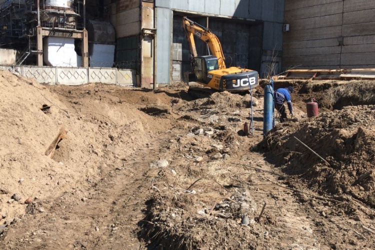 - Закольцовка пожарного водопровода диаметром 220 мм. Монтаж гидранта